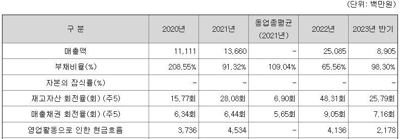 그린리소스의 부채비율은 매년 개선되는 모습을 보이다가 2023년 반기에 다소 증가하였는데 이는 신공장 건설용 차입금 증가에 기인하며, 금번 공모를 통해 개선될 전망입니다.