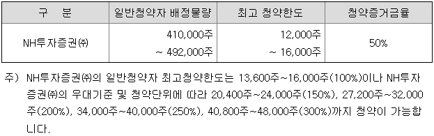 - 청약 가능 증권사 : NH투자증권