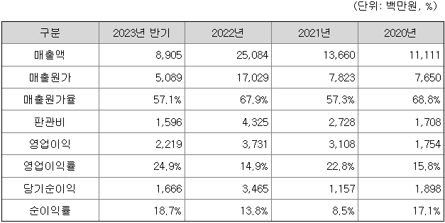 그린리소스의 매출액은 2020년 111억에서 2022년 251억 2023년 반기 89억의 매출 실적을 기록하고 있습니다.