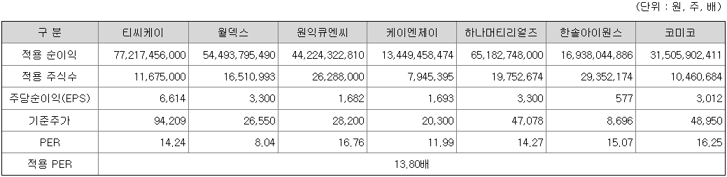 <유사회사의 평균 PER배수 산정>