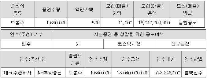 희망 공모가격은 11,000원 ~ 14,000원이고, NH투자증권에서 청약 가능합니다.
