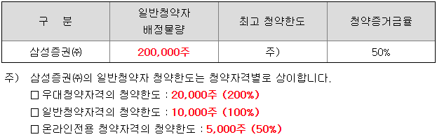 - 청약 가능 증권사 : 미래에셋증권, 삼성증권