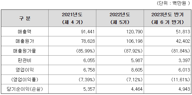 한편, 자회사인 엘에스알스코는 7%대의 영업이익률을 보이다가 2023년 반기 13%의 이익률로 개선된 모습을 보이고 있습니다.