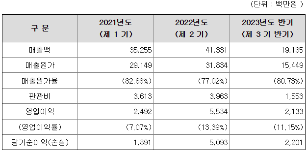 한편, 자회사인 엘에스알스코는 7%대의 영업이익률을 보이다가 2023년 반기 13%의 이익률로 개선된 모습을 보이고 있습니다.
