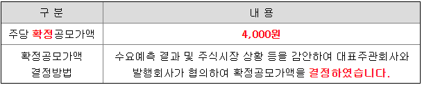 당초 희망 공모가격 밴드 (3,200원 ~ 3,600원) 상단보다 400원 상향 조정된 가격입니다.