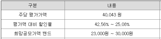 희망 공모가격은 23,000원 ~ 30,000원이고, 하나증권에서 청약 가능합니다.