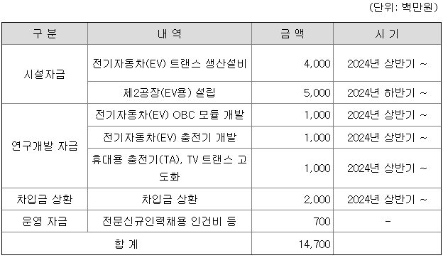 [공모자금 사용계획]