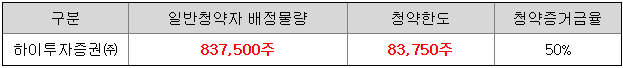 - 청약 가능 증권사 : 하이투자증권
