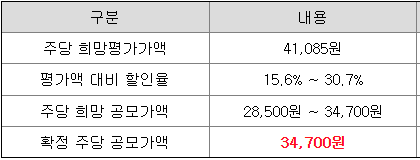 낮은 참여 경쟁률에도 불구하고 당초 희망 공모가격 상단으로 결정된 것입니다.