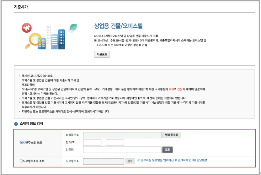 건물의 시가 표준액은 서울과 지방이 조회하는 방법이 다릅니다.