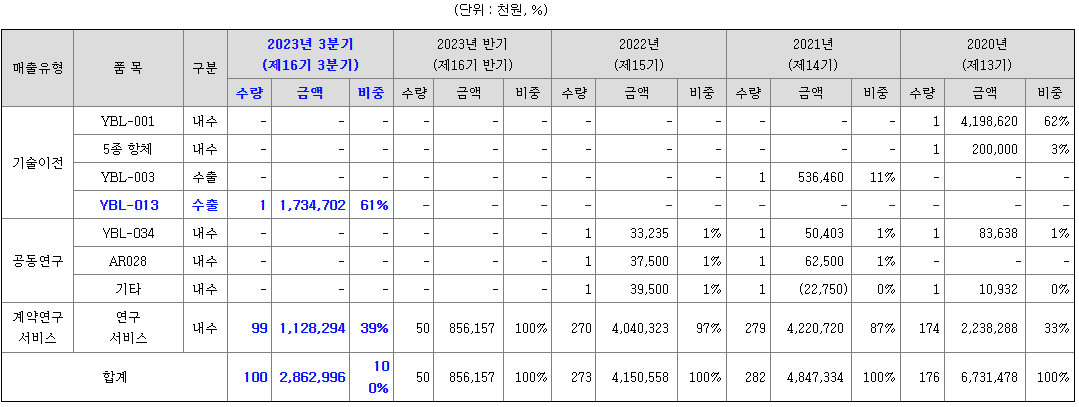 와이바이오로직스의 매출액은 2020년 67억을 기록한 이후 아직 횡보 상태입니다