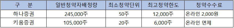 - 청약 가능 증권사 : 하나증권, 키움증권