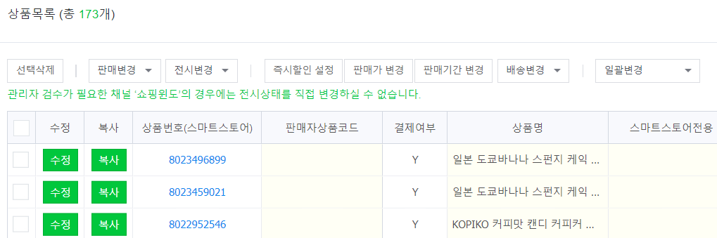 게시된 상품이 173개여서 한 개씩 수정하기에는 시간이 너무 오래 걸리고 힘들다고 생각되었거든요.