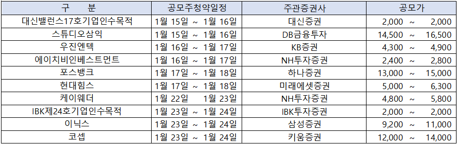 [ 2024년 1월 공모주 청약 중복 일정 - 2 ]