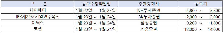 [ 2024년 1월 공모주 청약 중복 일정 - 1 ]