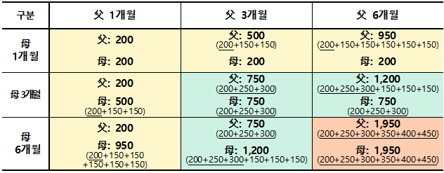 첫 번째 육아휴직자에 대해서는 일반 육아휴직급여(월상한 150만원) 지급 후,