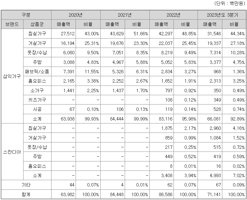 삼익가구 브랜드로 출발해 스칸디아 브랜드도 성장세를 보이고 있습니다.