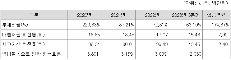 스튜디오삼익의 부채비율은 업종 평균 대비 양호한 수준을 유지하고 있습니다.