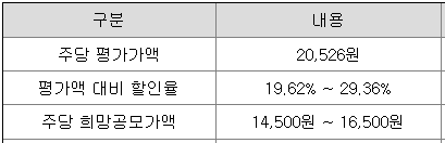 - 공모청약일 : 1월 25일(목) ~ 1월 26일(금)