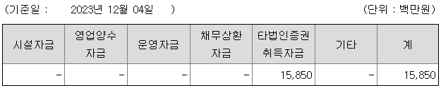 에이치비인베스트먼트는 금번 공모를 통해 조달된 자금 전액을 타 법인증권 취득자금으로 사용할 계획입니다.