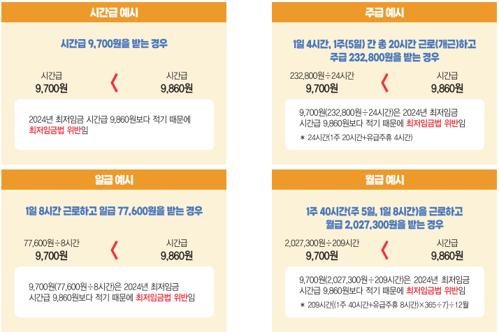※ 2024년 최저임금 위반 예시
