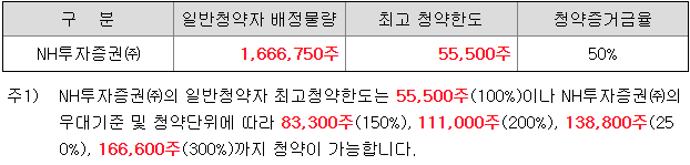 - 청약 가능 증권사 : NH투자증권