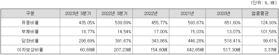 이닉스의 유동비율과 부채비율은 업종 평균 대비 양호한 수치를 기록하고 있습니다.