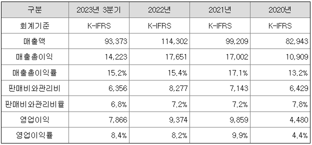 이닉스의 매출액은 2020년 794억에서 2022년 1143억으로 증가하였으며, 2023년 3분기 현재 934억의 실적을 기록하고 있습니다.