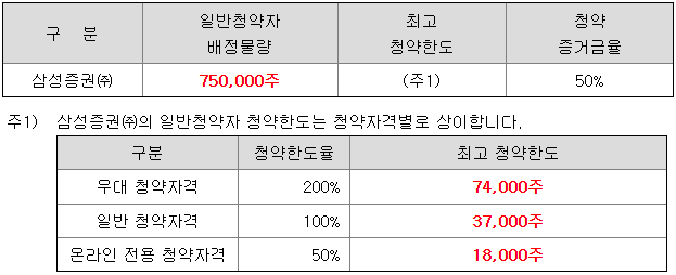 - 청약 가능 증권사 : 삼성증권