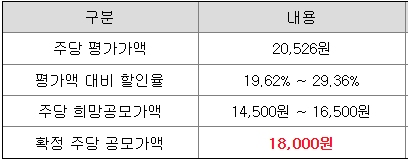 당초 희망 공모가격 상단 16,500원 대비 1,500원(9.09%) 상향 조정된 가격입니다.