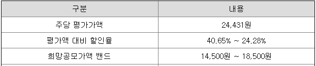 희망 공모가격은 14,500원 ~ 18,500원이고, 한화투자증권에서 청약 가능합니다.
