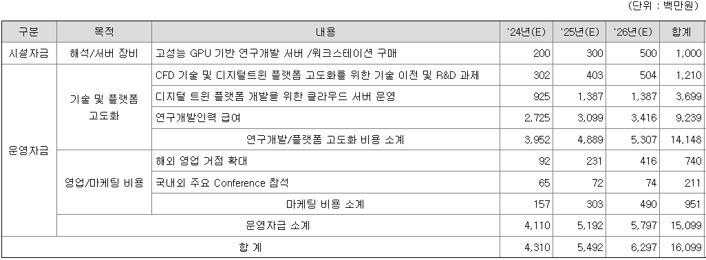 이에이트는 금번 공모를 통해 조달된 자금으로 서버 구매에 10억, 연구개발 및 플랫폼 고도화에 142억을 사용하고 나머지 151억을 해외 영업 거점 확대등 운영자금으로 사용할 계획입니다.