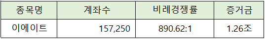 이에이트의 청약에는 1.26조원의 증거금이 모이면서 비례경쟁률 890.62: 1의 경쟁률을 나타냈습니다.