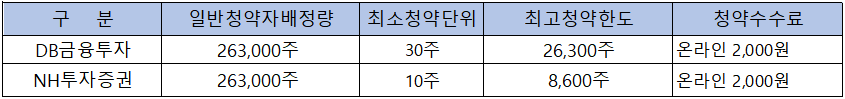 - 청약 가능 증권사 : DB금융투자, NH투자증권