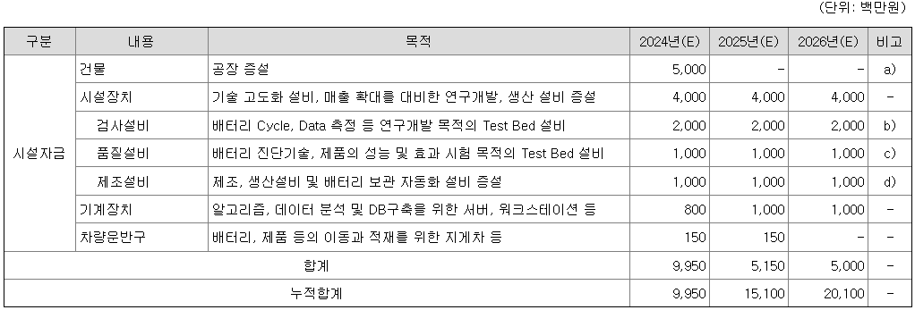 [공모자금 사용계획]