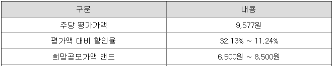 민테크의 희망 공모가격은 회사의 주당 평가가액에서 9,577원에서 11.24% ~ 32.13% 할인한 가격입니다.