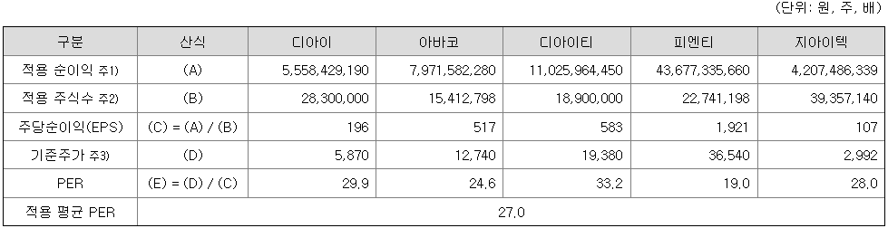 <유사회사의 평균 PER 배수 산정>