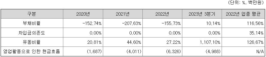 아이엠비디엑스의 유동비율과 부채비율은 2023년 7월 상환전환우선주가 보통주로 전환되면서 개선되었습니다.