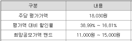 - 공모청약일 : 3월 14일(목) ~ 3월 15일(금)