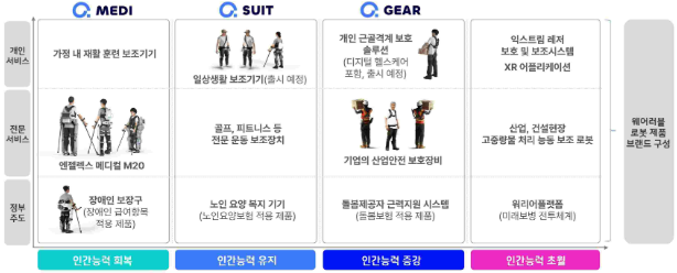<엔젤로보틱스의 웨어러블로봇 브랜드 사용 분야>