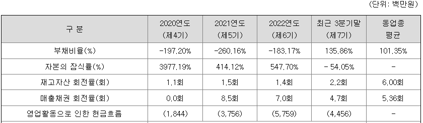 엔젤로보틱스의 재무구조는 2023년 8월 상환전환우선주의 보통주 전환 이후 부채비율 등이 개선되었으나, 동업종 평균 대비 열위의 상태입니다.