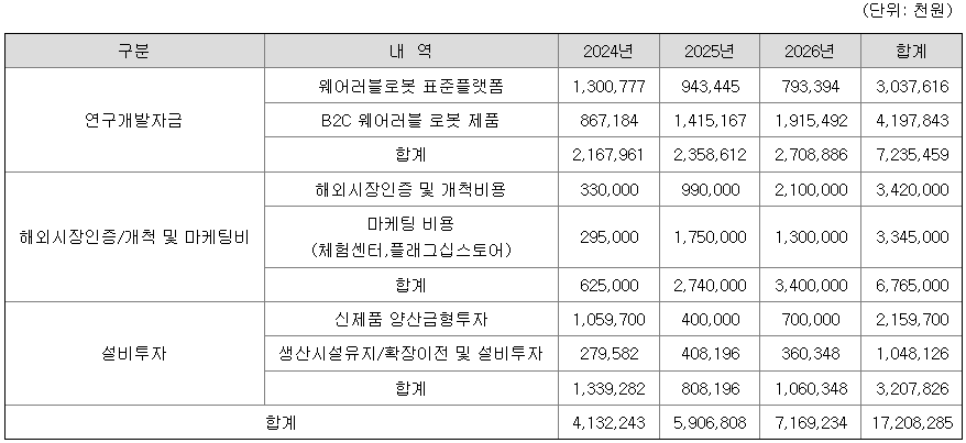 엔젤로보틱스는 금번 공모를 통해 조달된 자금으로 연구개발비에 72억, 해외시장 개척비에 68억을 사용하고, 나머지 32억을 설비투자에 사용할 계획입니다.