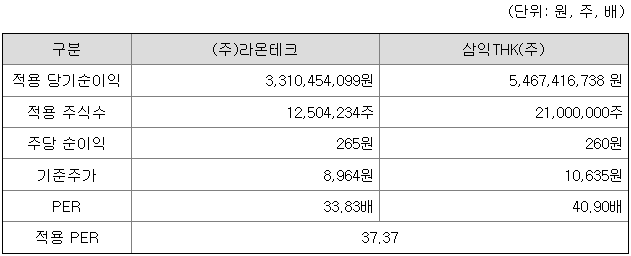회사의 주당 평가가액은 2026년 추정 순이익을 할인하여 현재가치로 환산한 후, 주식 수로 나누어 주당 순이익을 구하고, 여기에 유사회사의 평균 PER배수를 곱하여 산출한 것입니다.