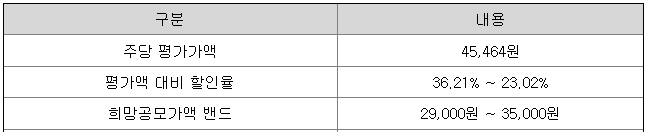 희망 공모가격은 29,000원 ~ 35,000원이고, 한국투자증권에서 청약 가능합니다.
