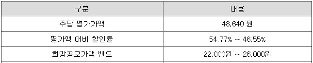 희망 공모가격은 22,000원 ~ 26,000원이고, 한국투자증권에서 청약 가능합니다.