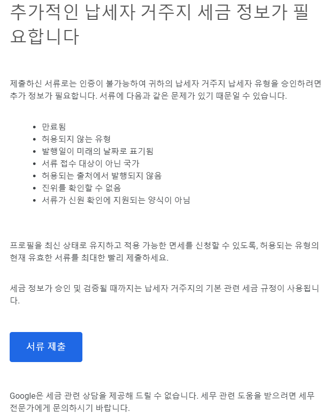[구글 애드센스에서 추가 세금 정보 제출 요구]