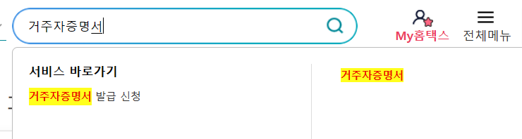 홈택스 검색란에 거주자증명서 입력 후 화면