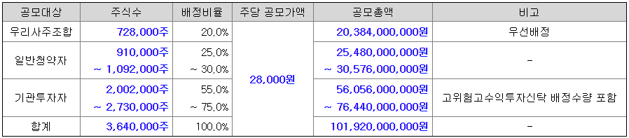 이는 우리사주조합의 청약 결과에 따른 변동폭을 감안한 수치입니다.