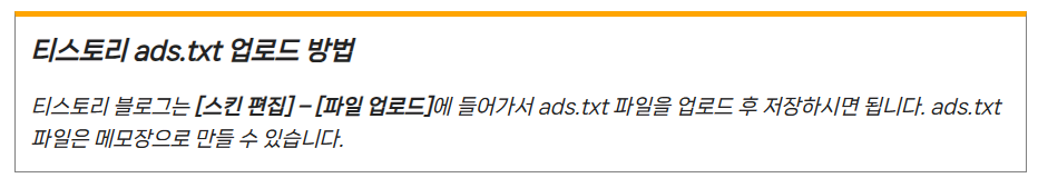 자세히 알아보기를 클릭한 결과 애드센스에서 사이트를 클릭해서 '찾을 수없음'ads.txt상태인 사이트를 다시 클릭하면 ads.txt파일을 복사할 수 있고, 이 파일을 사이트의 루트디렉토리에 업로드해야한다는 것까지 이해했습니다만, ads.txt파일을 만들고 내 사이트의 루트 디렉토리에 업로드는 어떻게 햐야하는지에서 다시 막혔습니다.