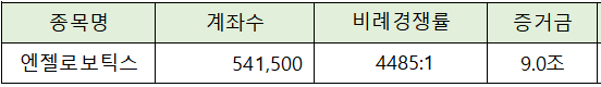 엔젤로보틱스의 청약에는 약9조원의 증거금이 모이면서 비례경쟁률 4,485 : 1의 높은 경쟁률을 나타냈습니다.